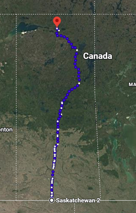 The route follows Saskatchewan's road network from Stony Rapids in the north to the Montana border in the south, traveling through the four major ecozones of the province: taiga shield, boreal shield, boreal plain, and prairie.